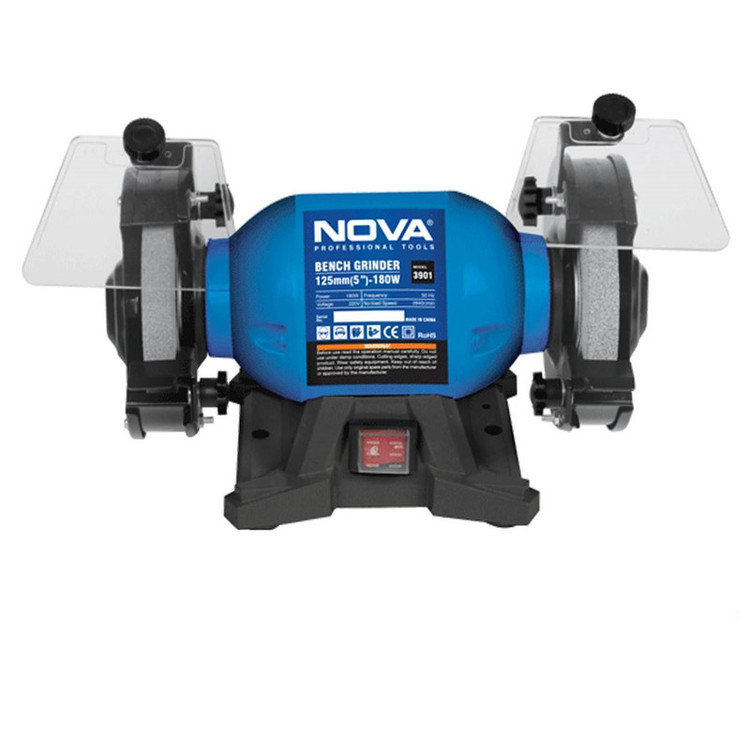 چرخ سنباده رومیزی 180 وات مدل 3901 ، یک ابزار ضروری با ساختاری قدرتمند در صنعت است که مجهز به دو صفحه سنگ 125 میلیمتری زبر بوده که کاربران از آن جهت پرداختکاری ، پلیسه گیری ، فرم دهی ، سنباده کاری مانند تیز کردن قلم ، پیچ گوشتی ، مته دریل و صاف کردن سطوح فلزی استفاده می کنند. این ابزار مجهز به موتوری قدرتمند با توان واقعی 180 وات بوده که قادر است سرعتی بالغ بر 2840 دور در دقیقه را ایجاد نماید. این ابزار با داشتن مشخصاتی منحصر به فرد و طراحی ایده آل ، محبوبیت بالایی در میان افراد مختلف و صنعت گران دارد. همچنین مشخصات فنی آن به گونه ای است که تمامی نیازهای کاربران را پوشش می دهد. همانطور که می دانید برای آنکه کاربران هنگام کار با ابزار دچار خستگی نشوند ، علم ارگونومیک در تولید آنها بکار می رود. این محصول نیز از این قاعده مستثنی نیست و از طراحی ارگونومیک و ابعاد مناسبی بهره مند می باشد که موجب راحتی افراد هنگام کار با آن شده است. چرخ سنباده رومیزی 180 وات مدل 3901 نووا برای افزایش دقت کاربران هنگام انجام کار ، از سیستم ضد لرزش بهره مند بوده و همچنین جهت افزایش ایمنی ، محافظ شیشه ای شفاف با قابلیت تنظیم بر روی آن تعبیه شده است که از چشمان افراد در برابر جرقه های ایجاد شده محافظت می کند.